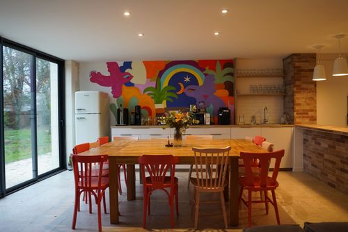 La Maison dispose d’une grange rénovée en espace de travail commun de 170m². Vous y trouverez tout ce dont vous avez besoin pour travailler et échanger à plusieurs. Un lieu d’accueil de 1 à 30 personnes.